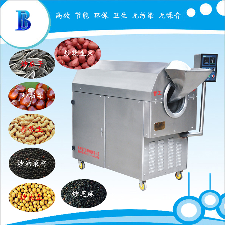 适合大部分炒货原料加工,榨油业、坚果类、五谷杂粮、中药材、调味品、制茶业与香料加工,炒芝麻、瓜子、花生、栗子、五谷杂粮、花生米、板栗、榛子、大米、小麦、面粉、板栗、松籽、榛子、杏仁、菜籽、咖啡豆、红枣、核桃,各种豆类、麦类、米类、核桃仁、葵花子、西瓜子、南瓜子、无壳瓜子、香榧、果仁、开心果等干果类食品烘炒。
