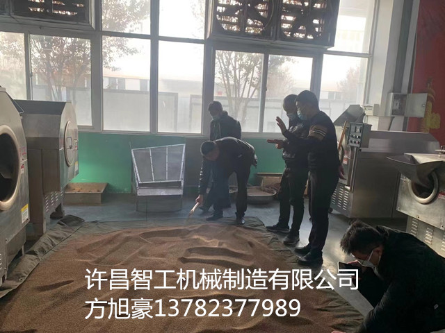 许昌智工DCCZ7-15型电磁炒货机一锅可炒制200斤芝麻,40分钟一锅,炒制出的芝麻鼓肚饱满均匀一致,客户非常满意。